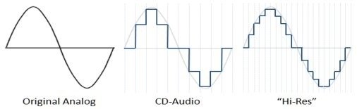 Red Book CD uses a bit depth of 16-bits. The broadcast video standard for audio, as well as files considered high resolution is 24-bits. Dynamics are particularly affected by bit depth, and by adding those extra 8-bits of data our ability to maintain the dynamics of a musical passage is greatly enhanced. If you listen to music that is not very dynamic you’ll have a hard time hearing the difference between 16- and 24-bit.