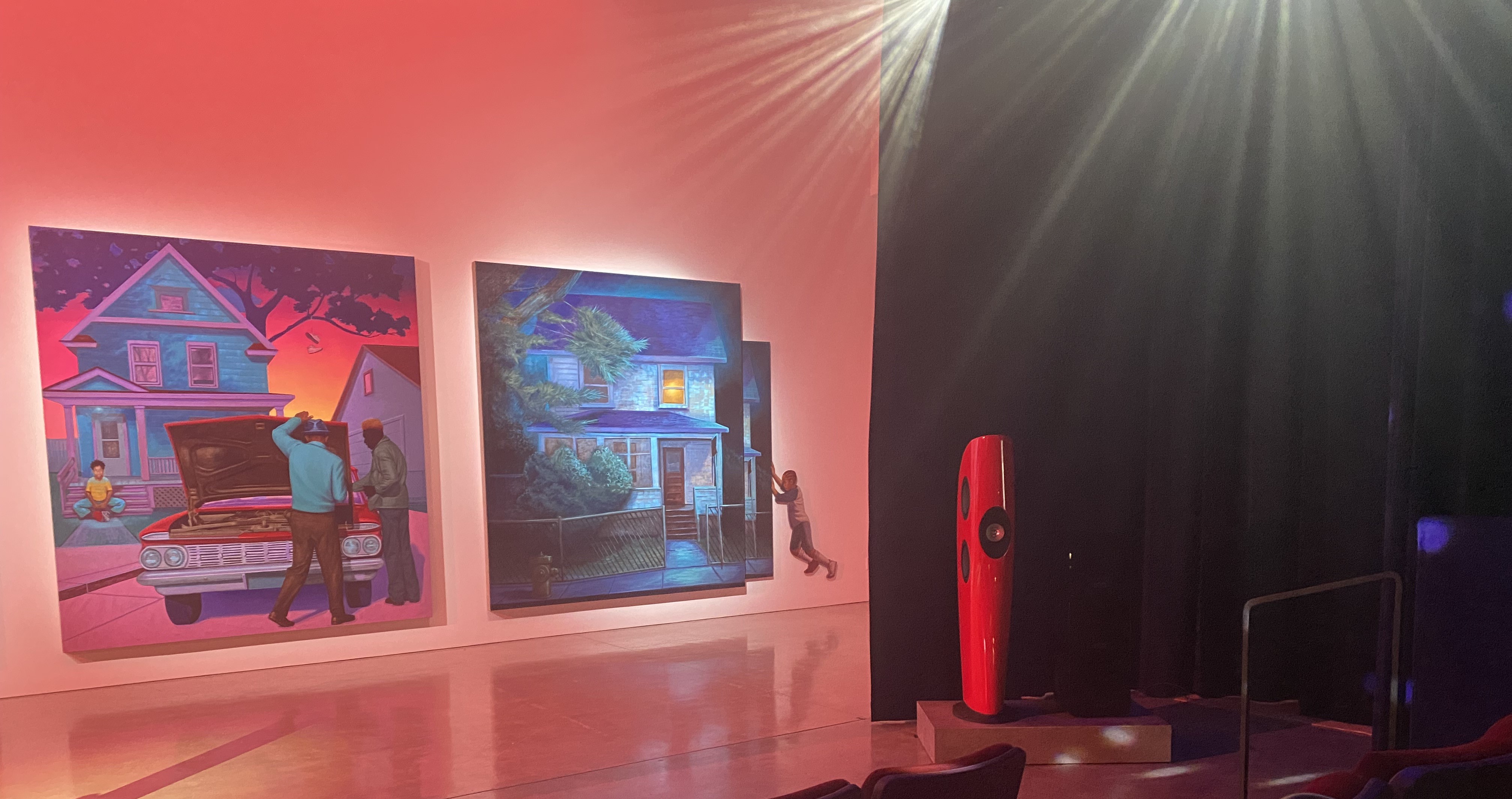 Kaphar: I've known about KEF speakers for a long time. I tried really hard to ignore them. I consciously tried to ignore KEF speakers. The reason I consciously tried to ignore KEF speakers because the ones I wanted were just so far out of my price range! The thing that's extraordinary about KEF is the sound. Everybody knows about the clarity, everybody knows that, but the design! I'm a painter. I'm a sculptor, so that was one of the first things. Like these are sculptural objects that sound comes out of [and] that’s pretty extraordinary. Whether it’s a Donald Judd reference in those black subwoofers [Kube 15 MIE] we used underneath the theater to make everybody rumble [Judd was an influential American artist in the minimalist style]. Man, I can't tell you how many people told me about the experience of those subs underneath [the seating]. It was pretty fantastic. Or whether it's a Brancusi sculpture that you're referencing with [the Blades]. [Constantin Brancusi was a Romanian sculptor and painter and is considered a pioneer in the modernism movement].